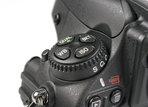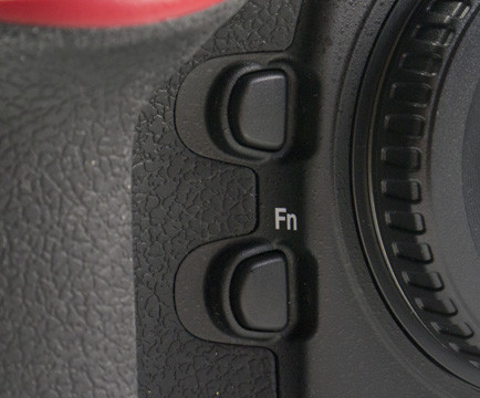 Ami azonnal szembetűnik, hogy a markolathoz közel eső két funkciógomb (szemből nézve a bajonett mellett balra) nagyobb lett, és egymáshoz közelebb került. Így könnyebben elérhetők, ráadásul nagyobb felületük miatt gyorsabban és könnyebben kitapinthatóak, ha a gép épp arcunk előtt van. A D700-on ezeket nem lehetett fogásváltás nélkül kényelmesen nyomkodni; ezzel szemben a D800-nál még a kioldóról sem kell levenni ujjunkat, hogy középső- és gyűrűsujjunkkal működésbe hozzuk őket. Apropó kioldó: az exponáló kis szigetét a mérnökök teljesen áttervezték. Egyrészt megváltozott a dőlésszöge, így remekül mutatóujjunk alá tud simulni, másrészt az expozíciókorrekció és a módváltó mellé a videofelvétel dedikált vezérlője is ide került. Ennek az átrendezésnek azonban egy hátránya is született: a módváltót csak E.T. érheti el kényelmesen fogásváltás nélkül, a gomb ugyanis túl messze került a markolattól.