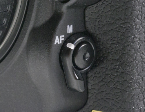 Már a Nikon D7000-nél is tetszett az AF/MF új kapcsolója, ami a D700-éval ellenben már csak kétállású, de cserébe elektronikus nyomógombbal is rendelkezik, amivel az egyes AF-módok közt válogathatunk (AF-S vagy AF-C és AF-mezők, paramétertárcsától függően).