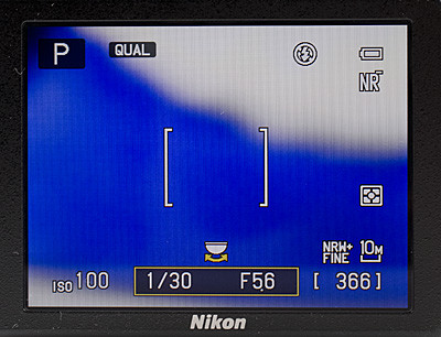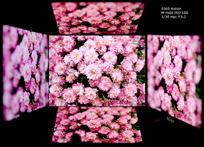 A 3”-os kijelző dönthető, lefelé körülbelül 80-85 fokban; a panelt tartó szerkezet nagyon jó minőségű, működése passzentos, pontos. A betekintési szögek nagyon tágak, gyakorlatilag nem lehet annyira oldalra fordítani a gépet, hogy ne lehetne látni az LCD szép képét. Próbánk során rögzített expozíciós értékek és 5560 K-s fehéregyensúly mellett kaptuk lencsevégre a képét: