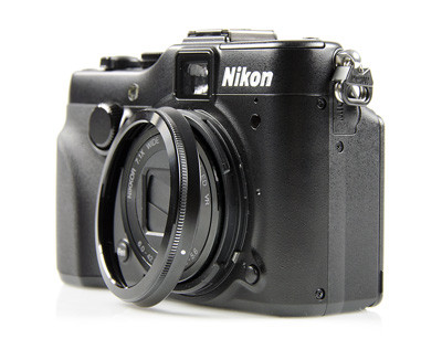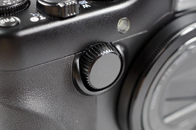 Az optika másik oldalán látható nyomógomb csupán mechanikus funkciót lát el: az objektíven körbefutó bajonettet védő gyűrűt lehet vele kireteszelni. Egy szabványos menetnek jobban örültünk volna, így további átalakítókra lesz szüksége annak, aki például távcsőre szeretné kötni a P7100-at.