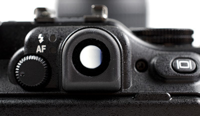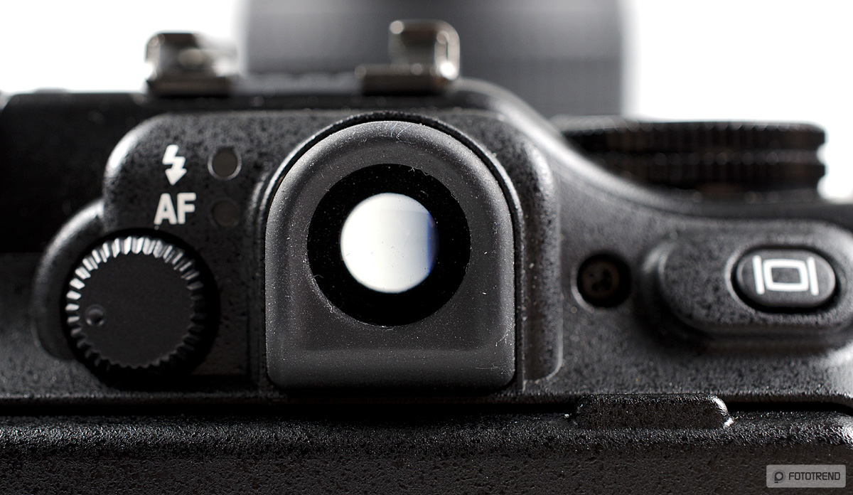 Csúcskompaktoknál már nem egy helyen találkoztunk optikai keresővel; ilyet kapott a P7100 is. Azonban ne számítsunk a dSLR vázaknál megszokott minőségű keresőre, mert ez itt egy egyszerű átnézeti lyuk, ami az optikával együtt zoomol és semmiféle információt nem jelenít meg. Leginkább egy kulcslyukhoz lehetne hasonlítani. Kicsit lentebb majd megmutatjuk, hogyan követi képével az LCD-n látottakat.