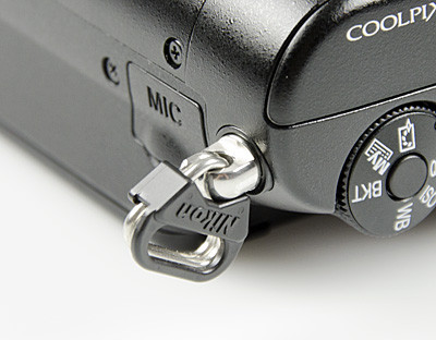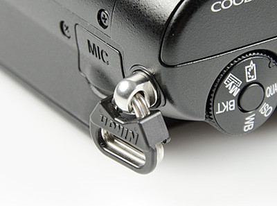 Óriási ötlet, hogy a P7100 nyakpántjának felfogató bütykei forgathatóak, így még kényelmesebb nyakba akasztva hordani a masinát, ráadásul kezünket sem nyomja annyira a két kis fém, mert igény szerint forgathatjuk a zárszemet.