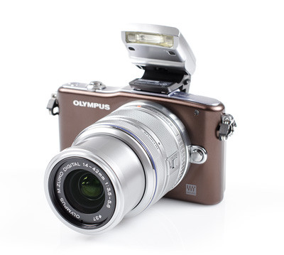 Persze a helyzet változik, ha objektívet és vakut csatlakoztatunk az Olympushoz; így már nem tűnik annyira zsebre vágható fényképezőgépnek (kabátzsebben viszont még így is simán elfér):