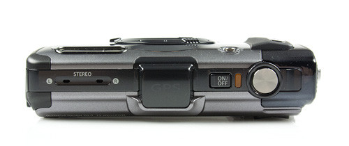 A gép tetején – végül – a sztereó mikrofon, a GPS egység púpja, a bekapcsológomb, a státusz LED és a kioldó látható. Az Olympus TG-1 ergonómiailag nem rosszabb vagy jobb, mint hasonszőrű kategóriatársai. Igen, a hátlap a kijelző mellett kissé zsúfolt, de ezt kompenzálja a nyomógombok jó minősége és jól érezhető nyomáspontja.