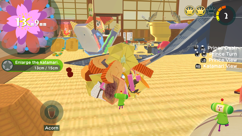 Továbbra is akadnak multiplayer-módok, melyek közül a legkidolgozottabb talán a KatamariBall, amelyben a felszedett cuccokat az űrhajónál lehet pontokra váltani – ha viszont rosszkor kicsinyítjük le gömböcünket, könnyen a többiek áldozatává válhatunk. A KatamariBall a gép ellen is játszható, de megvallom őszintén, nekem ez a típusú stressz nem hiányzott ebből a sorozatból. A Katamari Damacy akkor a legélvezetesebb, amikor a világ legmókásabb zenéi által aláfestve magunkra ragaszthatjuk fura világok egyre nagyobb tereptárgyait, a gyufáktól elindulva, és végül akár a Fujit is felszedve. E téren viszont csak az alapokat nyújtja a Once Upon a Katamari: hiába telt el 14 év a legutóbbi teljes epizód óta, megdöbbentően kevés ötlet gyűlt fel azóta a fejlesztőkben.