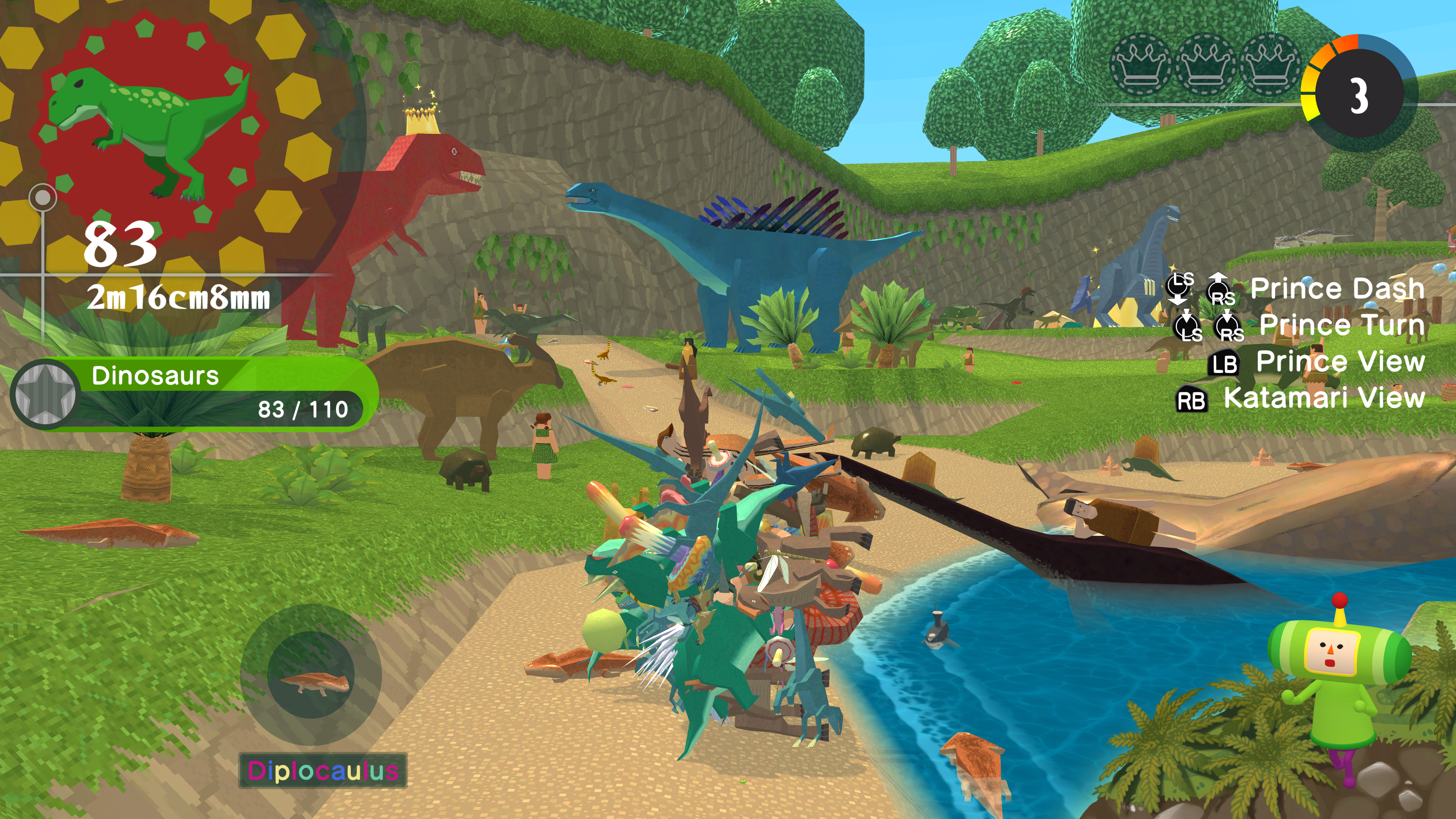 Legutóbb két éve érkezett életjel a sorozattól, és a második rész kiválóan sikerült felújításáért csak lelkesedni tudtam. A We Love Katamary parádés folytatás volt, ami nagyszerű ötletekkel és mesterien elborult pályatervezéssel dobta fel az alapokat – ami ugye egy ragadós, egyre nagyobbá váló gömböc tologatása. Minden Kozmoszok Királyának fiaként – mi A Herceget alakítjuk – mindenható, ámde igen szórakozott atyánk ritka hibácskáit kell minduntalan kijavítanunk, most például egy lomtalanítás során sikerült az öregnek darabokra robbantania a Naprendszert. Bár a feladatunk ezúttal is a bolygók és holdak összeragasztgatása lesz, ezt most változatos történelmi korszakokban való katamarizással fogjuk megoldani: utazunk majd vadnyugati aranylázba, gurigázunk majd karibi kalózhajókon, de a mamutoktól hemzsegő jégkorszaktól a japán Kofun-korszakon át a modern Taiwanig sokféle időszakot és helyszínt felkereshetünk. Ez önmagában már garantálja a vizuális változatosságot, a lényeget azonban sokkal inkább az jelenti, hogy a felragasztott tárgyaktól egyre nagyobbá hízó gombóc működését miféle ötletekkel tudják feldobni a designerek.