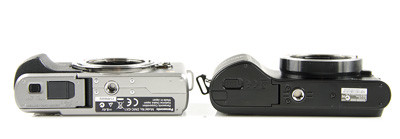A fém állványmenet pont az optika középvonala alá esik, ami további pluszpont a GX1-nek. Bár igaz, hogy így nem lehet kicserélni az akkut vagy a memóriakártyát, ha cseretalp van épp rögzítve a váz aljára.