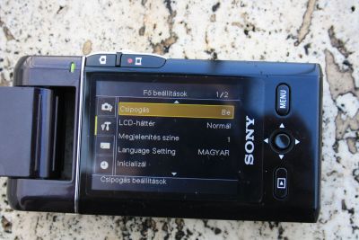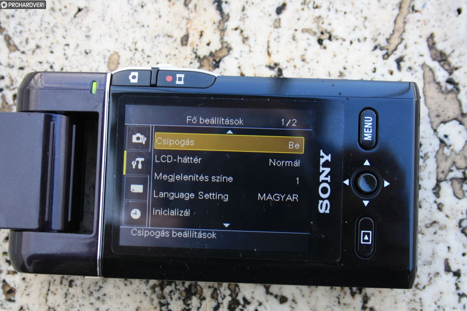 Bekapcsolás után jön a feketeleves! A 2,4 hüvelykes LCD kijelzőnek ugyanis csak a felső fele mutatja, hogy éppen mit is lát az objektív. Igen, bizony, tehát a mondjuk egy 1,2 colos képernyővel kell gazdálkodni, ami nevetségesen kevés. Az idegesítő az egészben az, hogy ott van alatta egy ugyanekkora kihasználatlan terület, az meg a másik, hogy a Sony azért már tett le korábban olyan fényképezőgépeket, kamerákat az asztalra, amiknél nem okozott gondot a kijelző méretének optimalizálása.