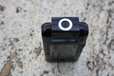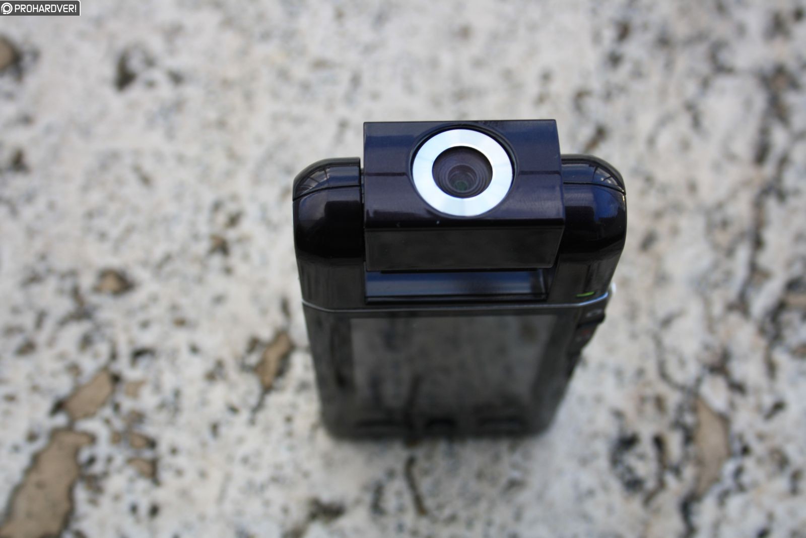A felső részére került az elforgatható objektív, amelyet ha kicsit megmozdítunk, akkor a készülék automatikusan bekapcsol. Mivel viszonylag nehezen jár, nem kell attól tartani, hogy felvétel közben saját kedve szerint kezd el ide-oda mozogni. A talpára egy műanyag állványmenet került.