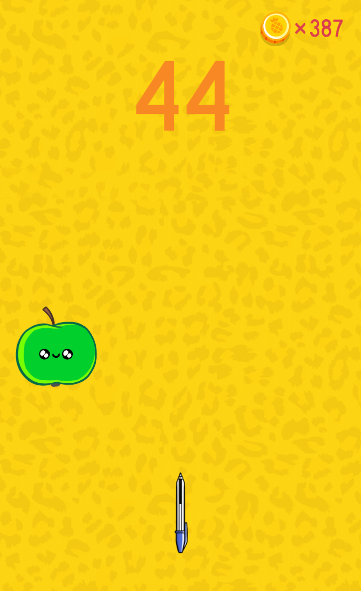 Az ötlet ezúttal adott volt, így már csak pontot kellett tenniük az i-re, és azokat is a végtelenségig idegesíteni, akiknek az eredeti videó elnyerte a tetszésüket. Megkapjuk az eredeti változat enyhén eltorzított audiovilágát, és persze rengeteg gyümölcsöt, amikbe tollakat kell katapultálnunk. Pazarlásnak azonban nincs helye, ha egyszer nem jut el az íróeszköz az almáig vagy az ananászig, vége a játékunknak. Ahogy a képeken és a videón látszik, a grafika teljesen egyszerű, ám a játékmenet sem sokkal bonyolultabb: nem irányíthatjuk a toll mozgását és nincs több célpont egyszerre a képen, ha mindig jó időben tudunk hozzáérni a kijelző tetszőleges pontjához, végtelen mennyiségű pontot zsebelhetünk be.