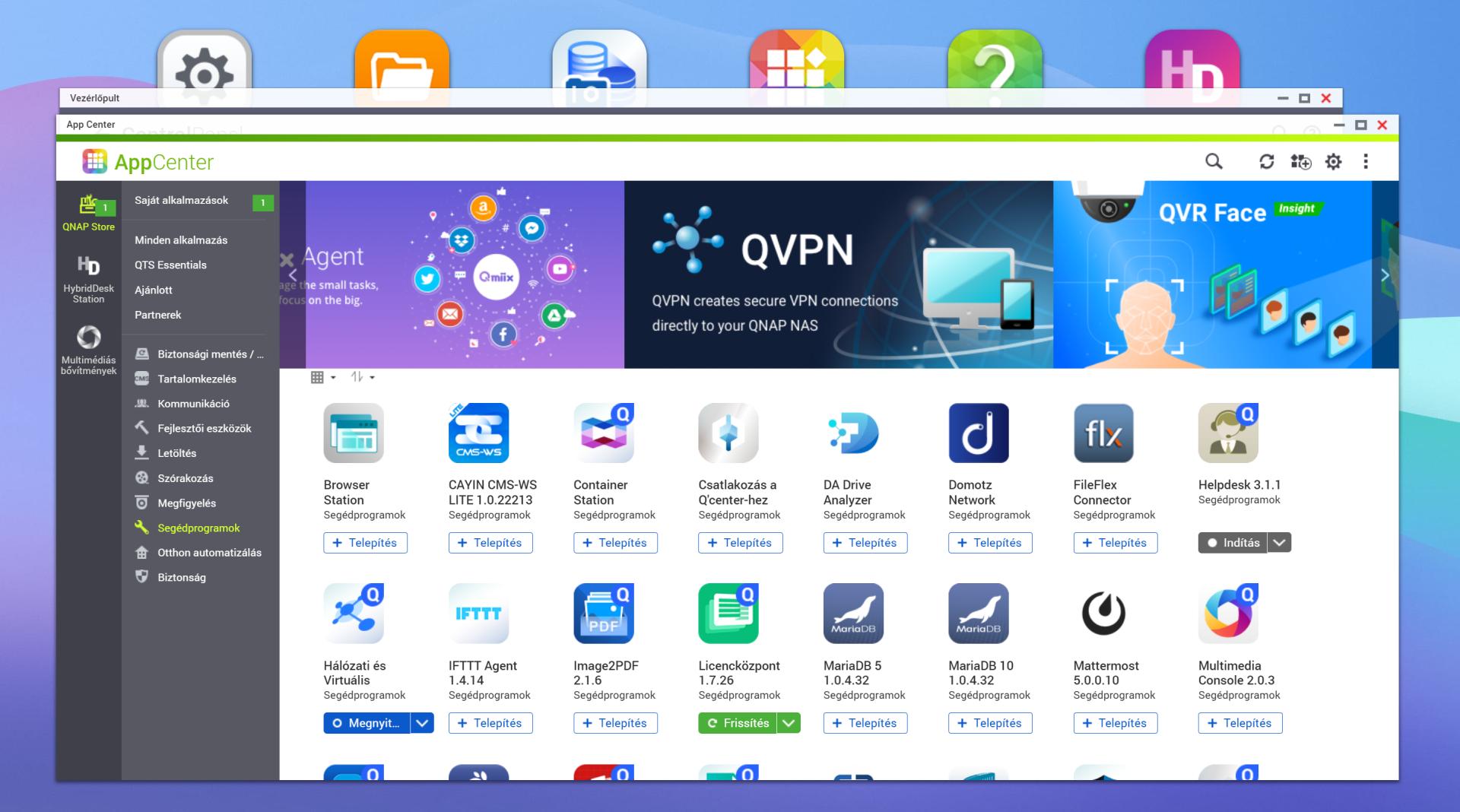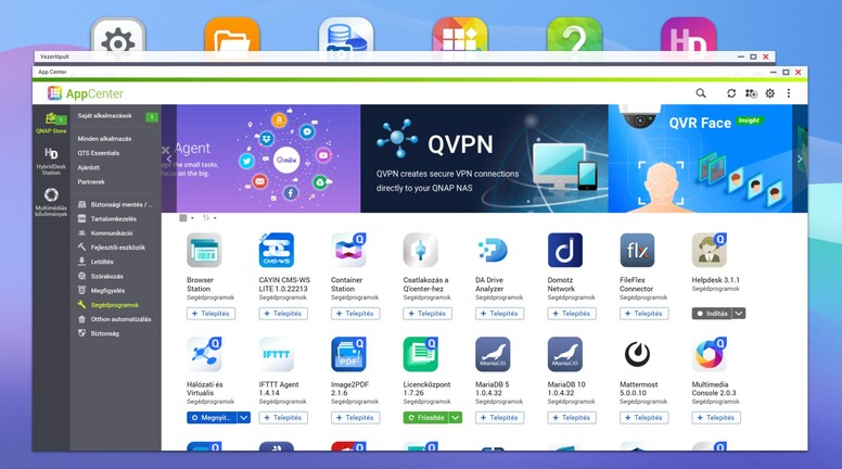 Ami a továbbiakat illeti, a QTS 5 természetesen rengeteg egyéb szolgálatást is kínál, és magyarul is tud. A verzióról korábban már írtunk, úgyhogy erre most nem térünk ki, már csak azért sem, mert gyakorlatilag egy teljes értékű operációs rendszerről van szó, melynek tudása szoftverboltokból letölthető alkalmazásokkal bővíthető, tehát a NAS az adatok szimpla tárolására és megosztására szolgáló hálózati eszköz helyett lehet multimédiás kiszolgáló, mely menet közben képes fájlok átkódolására, irányíthat biztonsági kamerarendszert, üzemeltethetünk rajta privát felhőt és így tovább.