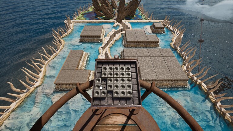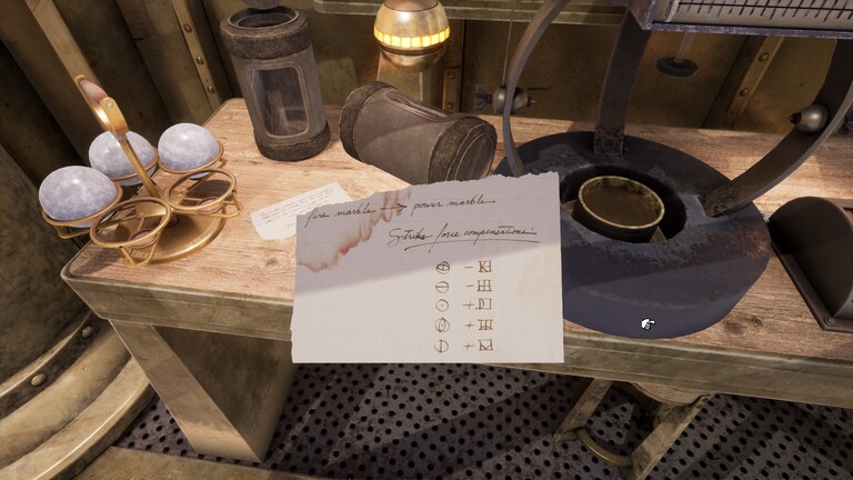 Amennyiben nem akarunk állandóan online végigjátszásokhoz nyúlni, a Riven például megköveteli a sűrű jegyzetelést. Van erre beépített napló is, ahová az X gombbal lopott képek is kerülnek, de nekem jobban működött egy füzetben való valódi firkálás – már csak azért is, mert ebben a világban a számokra két, a miénktől eltérő írásjel-rendszer is létezik, és bár maguk a matematikai feladatok általában pofonkönnyűek, rájönni, hogy pontosan milyen számokat kell összeadni, és aztán az egészet átírni valamelyik itteni jelrendszerre már alaposan összekeveri az idegrendszert. Fontos tudni, hogy az eredeti fejtörőkbe sokhelyütt belenyúltak kicsit a fejlesztők: mivel a teljes VR-kompatibilitás miatt most minden fontos elemnek nagyjából fejmagasságban kellett lennie, meglepően sok területet kellett átrendezni, újragondolni. A néhány legendásan unfair puzzle megoldása lényegesen közérthetőbb lett (a keményvonalas rajongók persze ennek nem örülnek), másutt pedig teljesen új feladatokat találtak ki helyettesíteni a régieket. A változások még így sem eredményeztek új játékot: aki esetleg emlékszik a régi megoldásokra, az így is képes lesz izommemóriából leküzdeni az akadályok túlnyomó részét.