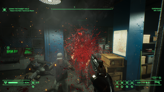 Az Unfinished Business a korábbi, meglepően szerteágazó események véres lezárása után nem sokkal veszi fel a fonalat, egy jóval átláthatóbb történetet kínálva: az ügyeletes zsoldosbanda mindenkit lemészárol detroiti rendőrősünkön, és extra sértésként még félig gép, félig ember főszereplőnk high-tech fészkét is meglovasítják. Mint kiderül, vezetőjük terve – a mi alkatrészeinket felhasználva – egy olyan gép felépítése, amellyel bármilyen masinát meg lehetne hackelni, így hát mi más is lehetne a megoldás, mint minket küldeni a fenyegetés után, hátha valami csapdába esünk? Szerencsére ez a banda lokalizált problémaként dolgozik: egy ménkű magas, építés alatt álló felhőkarcolóba vették be magukat, így a közfeladatokat ezúttal temérdek lépcsőzés közepette látjuk majd el, azonnal az ember eszébe juttatva a legutóbbi Judge Dredd-filmet. Szerencsére nem csak arról van szó, hogy szintről szintre haladva módszeresen végiggyakjuk az egész házat, az előző játék szabadon bejárható, mellékküldetéseket kínáló Detroitjának mintájára ugyanis civilekkel teli, békés zónákat is felkereshetünk. Igaz, ezek kidolgozottsága alaposan elmarad még az évtizedes első Metro-játék csatornamélyi városaitól is, és maguk az extra feladatok is csak ritkán szórakoztatnak annyira, mint a Rogue City legmókásabb megbízásai, de legalább megtörik az amúgy állandóan 110%-on pörgő akció monotonitását.