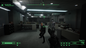 Bár hangsúlyozom, ez nem egy DLC, azt azért nem hallgathatom el, hogy igazán friss dolgokból vajmi kevés került az új játékba. Egyetlen figyelemre méltó új fegyver van, igaz, az egyszerre látványos és hatásos: a Robotzsaru ellen kifejlesztett fagyasztót tudjuk leszedni az elit zsoldosok hullájáról. Bár ez finoman szólva sem a leggyorsabb fegyver a világon, ha egyszer sikerül elsütni, a találat nyomán eljegecesedő ellenfelek maradnak csak mindenfelé – ha nem lenne annyira hatékony a fejleszthető kézipisztoly, szívesen használtam volna ezt is. Ellenfélből akad pár új típus, legyen szó ismerős módon a földön guruló robbanó droidoktól a jetpackes katonákig – arra azonban nem jutott idő, hogy akár ezek, akár a régi ellenfelek okosabbá váljanak. A legtöbb még mindig bambán lapul valami fedezék mögött, vagy ostobán grasszál ide-oda, amíg csak célkeresztünk elé nem kerül. Nincsenek összehangolt akciók, nincsenek taktikus oldalbatámadások, sőt, még azzal a rém fejlett manőverrel sem tudnak mit kezdeni a katonák, hogy mondjuk bebújunk egy szekrény takarásába. Érthetetlen módon az ajtó-betörések sem fejlődtek, és hiába Robotzsaru az, aki az akciót elindítja, olyan lassan reagál saját cselekedetére, hogy közben tucatnyi találatot szenved el.