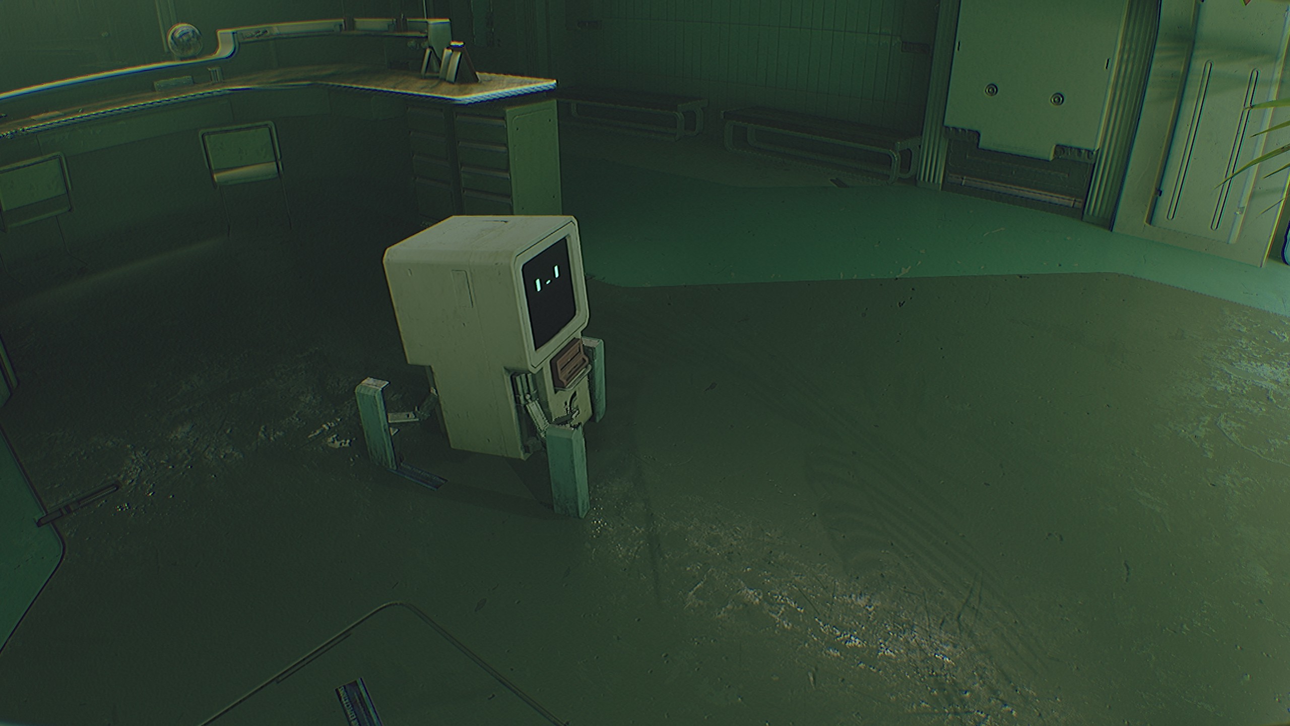 A Routine egy elhagyatott holdbázis fémfolyosóira hajítja a játékost, egy olyan környezetbe, amelyben a ‘80-as évek technológiai jövőképe elevenedik meg – mai szemmel nézve tehát a retrofuturizmus a vezérlő eszme. A környezet sok tekintetben az Alien: Isolation által kijelölt irányt követi: neonfényben úszó kezelőpanelek, zümmögő CRT-monitorok, kazettás interfészek, mechanikus kivetítők és különféle robotok alkotják azt a díszletet, amelyben egy rejtélyes tragédia nyomait kell feltárnunk. A vizuális stílus szemcsés, mégis meglepően realisztikus: a felületek tapinthatónak hatnak, a kijelzőkön lassan villódzó kurzorral navigálunk, és szinte minden ajtó, terminál vagy rendszer azonosítást igényel. A Routine nem egyszerűen szép, hanem hiteles is: az egész bázis olyan benyomást kelt, mintha valóban működött volna, mielőtt valami nagyon félrement annak mélyén. A játék atmoszférájának kulcsa a realizmus és a tudatosan adagolt csend. A Routine nem a folyamatos, látványos ijesztgetésre épít, nem szórja tele a pályát klasszikus jump scare-ekkel, helyette lassan, fokozatosan húzza be a játékost a bizonytalanság érzetébe. Az üres folyosók, a statikus háttérzaj, a robotok időnkénti mocorgása és az eszközök pittyenése mind apró elemek, amelyek együtt teremtik meg a feszültséget. A félelem forrása legtöbbször nem az, amit látunk, hanem az, amit csak sejtünk a sötétben. A játék első szakasza emiatt kifejezetten visszafogott, már-már sétaszimulátorra emlékeztető élményt nyújt, amely lassan, de biztosan fordul át jóval nyersebb, pszichológiai horrorba.