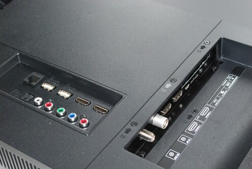 A káva a mai trendeknek megfelelően keskeny, de nincs egy síkban a képernyővel, és sötétszürke színe jól passzol az ezüst fényezésű talpakhoz. A tévé külseje nem különösebben figyelemfelkeltő, de ez nem feltétlenül baj, és az is igaz, hogy szinte bármilyen típusú belső térbe illik. A már bevált módon a ki- és bemenetek a hátlapon kaptak helyet: található itt négy HDMI 2.0 (az egyik ARC támogatású), két USB 2.0, valamint egy-egy komponens, kompozit Ethernet, micro USB, optikai digitális audió és 3,5 mm analóg audiocsatlakozó, továbbá egy SD/TF kártyaolvasó és egy CI+ slot is.