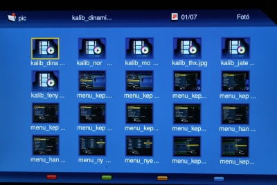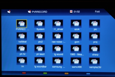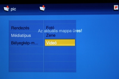 Elsőre abban sem voltunk biztosak, hogy építettek médialejátszót a tévébe, hisz ez a funkció a menün keresztül nem is érhető el. A bemenetek között kell kiválasztani az USB-t, és itt egy OK megynyomása után találjuk magunkat médialejátszóban. A grafikai megvalósítás finoman szólva is puritán. A könyvtárak között a kurzorral lehet ugrálni, és szintén az OK gomb megnyomásával léphetünk tovább. Itt a Menu gomb segítségével választható ki, hogy videózni, képeket nézegetni vagy zenét hallgatni szeretne-e a felhasználó. A jobb felső sarokban látható, hogy éppen melyikre is van e három lehetőség közül állítva. Ennek csak azért van jelentősége, mert ha például zeneszámokat tartalmazó könyvtárba lépünk, és videóra van állítva a médiatípus, akkor az életben nem fogunk foteldiszkózni, hiszen a fájlokat sem képes ekkor megjeleníteni.