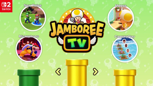 A főmenübe lépve három opció vár minket. Az első a „Super Mario Party Jamboree”, ami az eredeti játék Nintendo Switch 2-változata. Ez gyakorlatilag az eredeti játék minimális grafikai újítással, tartalmi extrák nélkül. Elérhető egy „Game Share” opció, ami kifejezetten hasznos, ugyanis megoszthatjuk játékunkat a közeli Switch- és Switch 2-gépekkel anélkül, hogy azok rendelkeznének a játékkal – vagyis végeredményben egy játékkal is lehet négy gépen egymással játszani. A harmadik opció a „Jamboree TV”, ami az új cuccok gyűjtőhelye. Itt már az alapfelállás is eltérő, és a teljes élményt úgy prezentálja a program, mintha egy tévés vetélkedő, és nem egy asztali társasjáték lenne. A játékosok száma, majd a karakterek kiválasztása után a színpadon választhatunk a Jamboree TV négy fő lehetősége közül, ahol folytatódnak a furcsaságok.