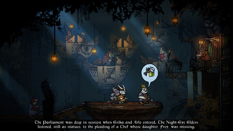 A békeszerető patkányok és az ádáz békák párharcára fókuszáló, a mesés állatvilágot a középkorba helyező Tails of Iron egész szép kis siker lett néhány éve, dacára annak, hogy az aranyos külsőségek mellé igen komoly nehézség társult a Soulslike elemek jelenléte miatt. Az Odd Bug Studios pedig nem ült a babérjain, és bő három év elteltével el is hozta nekünk a következő részt, mely a korábban megismert déli királyság helyett ezúttal a rideg, hófödte északira fókuszál. Ennek apropóján új főhőst is kapunk Arlo képében, aki a korábban megismert Redgi herceghez hasonlóan szintén trónörökösnek mondható, még ha nem is királyi vér csörgedezik az ereiben. Az utóbbi apróságot és a megváltozott helyszínt leszámítva a sztori alapfelütése viszont változatlan maradt: ezt a birodalmat is leigázza egy sötétben szervezkedő erő – ezúttal denevérek békák helyett – a mi célunk pedig az lesz, hogy visszafoglaljuk a földeket, segítő kezet nyújtva a lakosoknak, és hogy újraépítsük a lerombolt királyi várat, valamint annak haderejét.