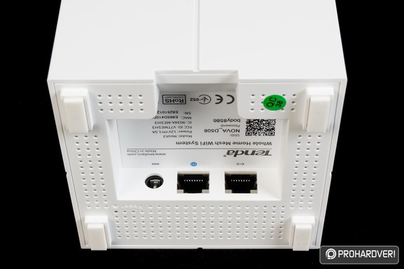 A külsőre – és feladatra is – teljesen egyforma egységek alján összesen három csatlakozót találunk: egy a külső tápegységhez tartozik, a másik kettő pedig Gigabit Ethernet. Ezek közül a központi egységen az egyik használható WAN portként, míg a többinél mindkettő bevethető LAN csatlakozóként, két vezetékes eszköz számára.