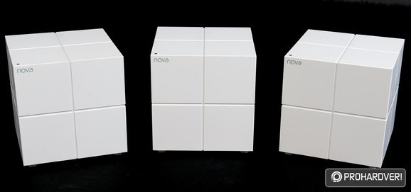 A dizájnra egyből ötöst adnánk a cégnek: a kisméretű, kocka formájú egységek könnyedén elhelyezhetőek bárhol, a NOVA feliratból és az apró LED-ből álló „díszítés” is visszafogott, az MW6 tehát könnyen beilleszthető bármilyen lakásbelsőbe. A kockák négy alacsony lábon állnak, az alul elhelyezett csatlakozókból a kábelek pedig egy kis kivágáson vezethetőek el a készülék mögött. A Zyxel Multyhoz hasonlóan falra rögzítési opciót itt sem kapunk, de ez a méretek miatt kevésbé zavaró.