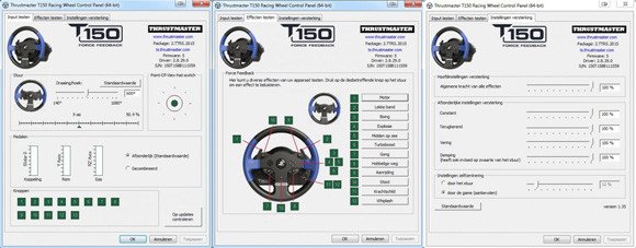 Néhány perc kérdése volt üzembe helyezni a Thrustmaster T150-et. A kormány asztalra rögzítése teljesen egyértelmű, a beépített táp miatt eggyel kevesebb csatlakozóval kell dolgoznunk. A széria pedál mellett – pontosabban helyett – a három fém taposófelületű T3PA vagy a komolyabb T3PA-PRO szintén használható vele, sőt a TH8A botváltót is ráköthetjük. A szoftver telepítése után érdemes egyből frissíteni a firmware-t. A beállítási lehetőségek széleskörűek, a maximális elfordulás, kalibrálás és gombok programozása mellett az erő-visszacsatolás is finomhangolható ugyanúgy, mint komolyabb márkatársainál. Leglényegesebb paramétere, hogy legfeljebb 1080 fokot, tehát három teljes fordulatot fordul a kormány.