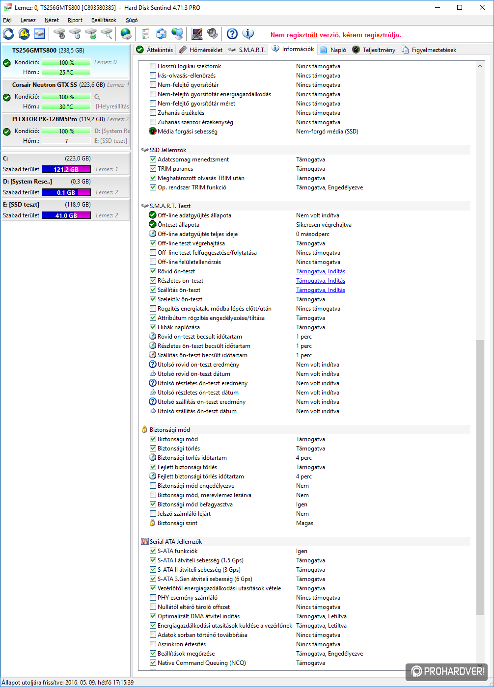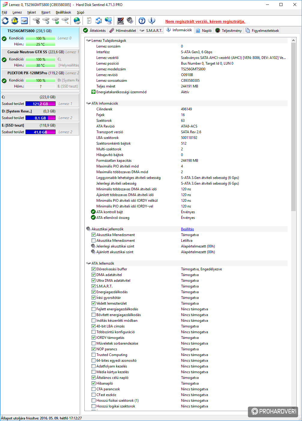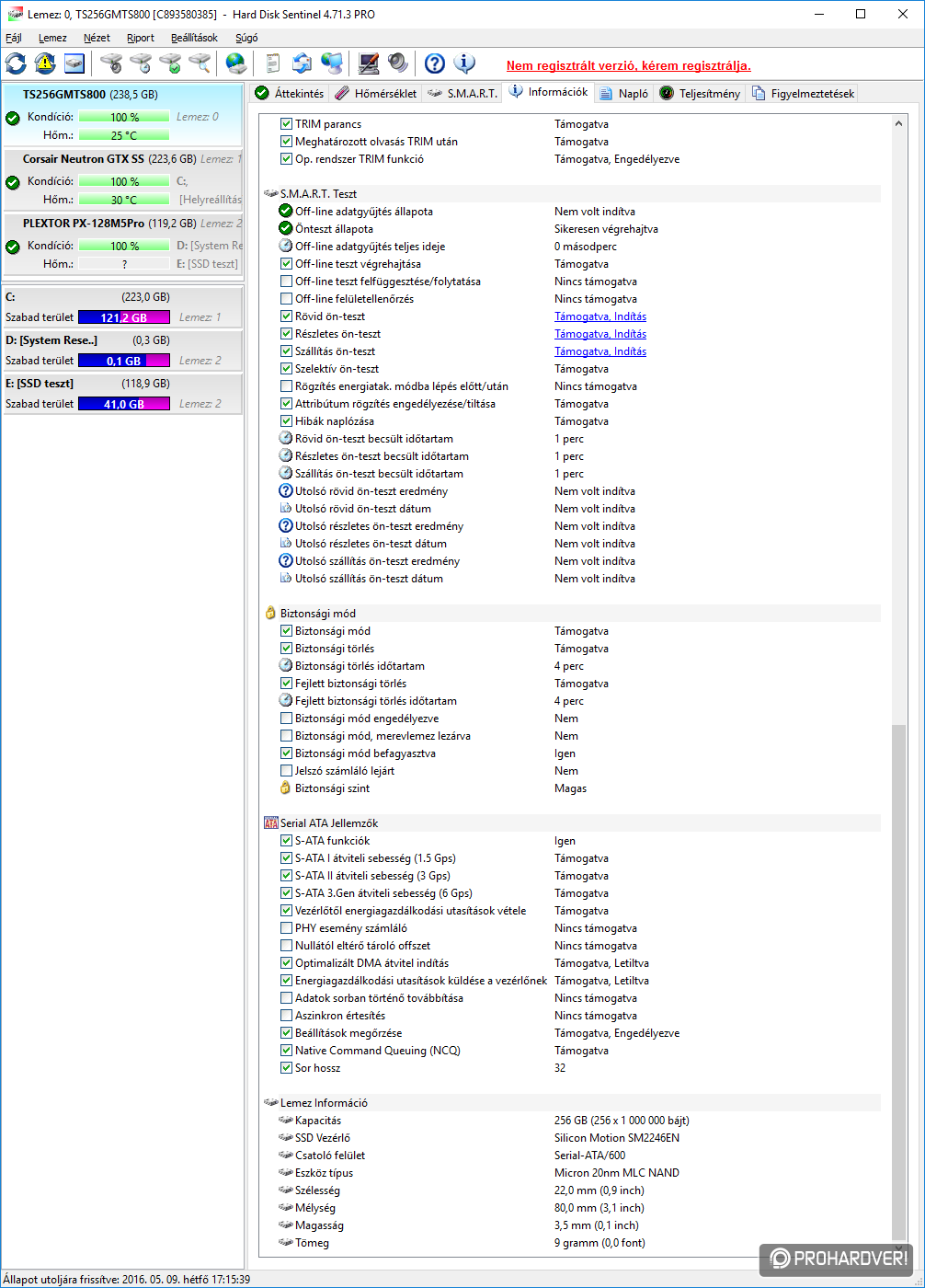 HDSentinel információk a tesztelt Transcend MTS800-ról [+]