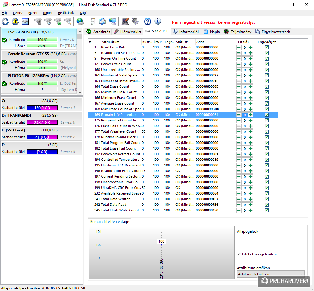 A S.M.A.R.T. tábla a tesztalany esetében [+]