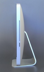 A dobozából kiemelve már megérezhettük a gép súlyát, kicsivel több, mint 9 kilót nyom a 45 x 53 x 19 cm-es iMac. A nagyobbik modell ezzel szemben már majdnem 14 kilogrammos tömegű, mérete pedig 52 x 65 x 21 cm körüli. A számítógép igazán impresszív látványt nyújt. Az alumínium és az üveg összhatása elég meggyőző, a néhol éles, néhol lekerekített sarkok, élek pedig kellemes összhangban vannak.