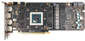 A Founder's Edition referenciakártya megjelenése követi a jó ideje megszokott külsőt, így ezen a téren nem számíthatunk meglepetésre, a zölden világító GeForce GTX is a jól ismert dizájnelemek közé tartozik. Ami viszont árulkodó, az a DVI csatlakozó a hiánya, amit szándékosan hagytak el a hátoldalról, ezzel javítva a "blower" ventilátorral szellőztetett hűtő hatásfokát.